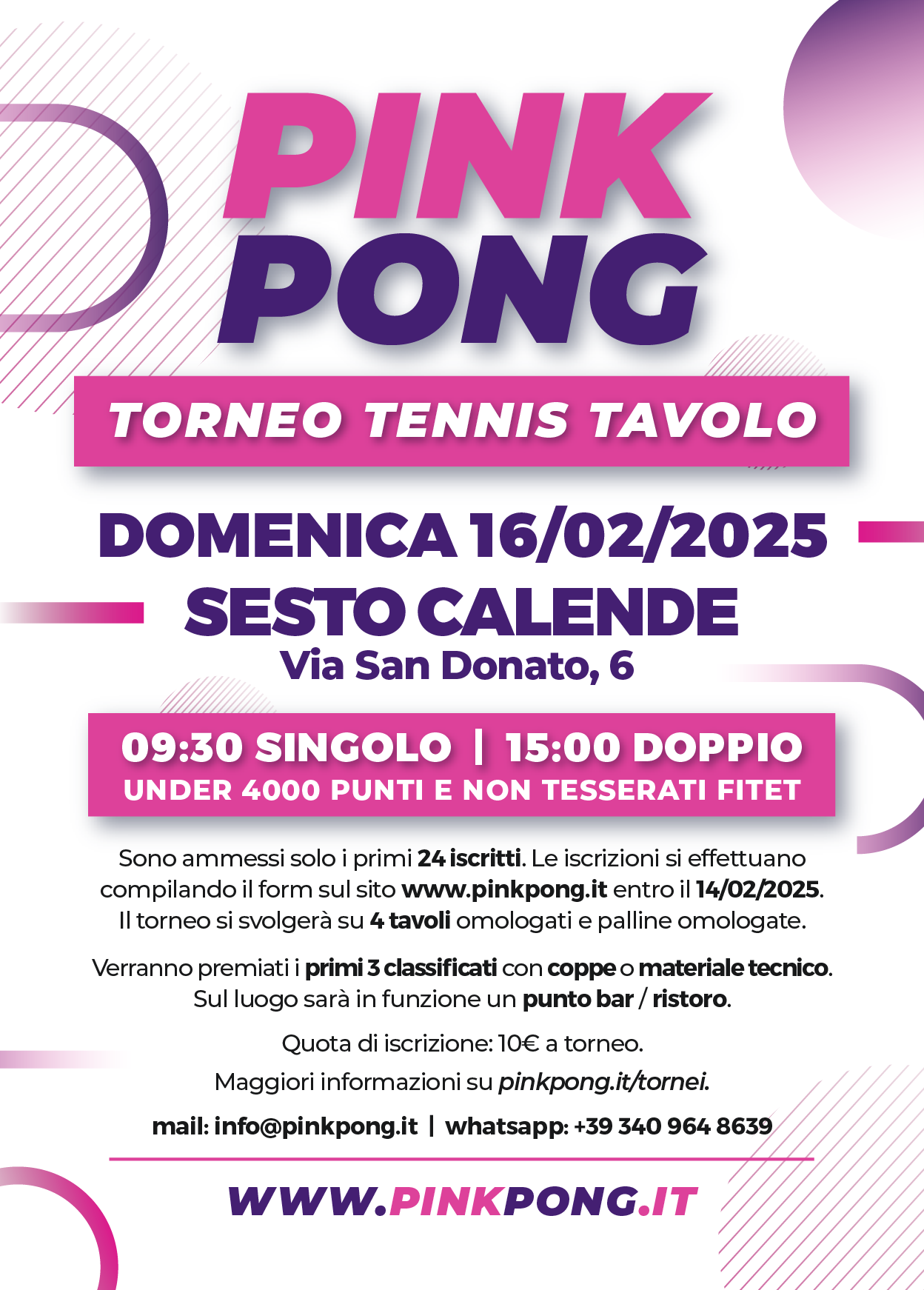 Le iscrizioni si effettuano compilando il form sul sito www.pinkpong.it entro e non oltre il 14/02/2025.